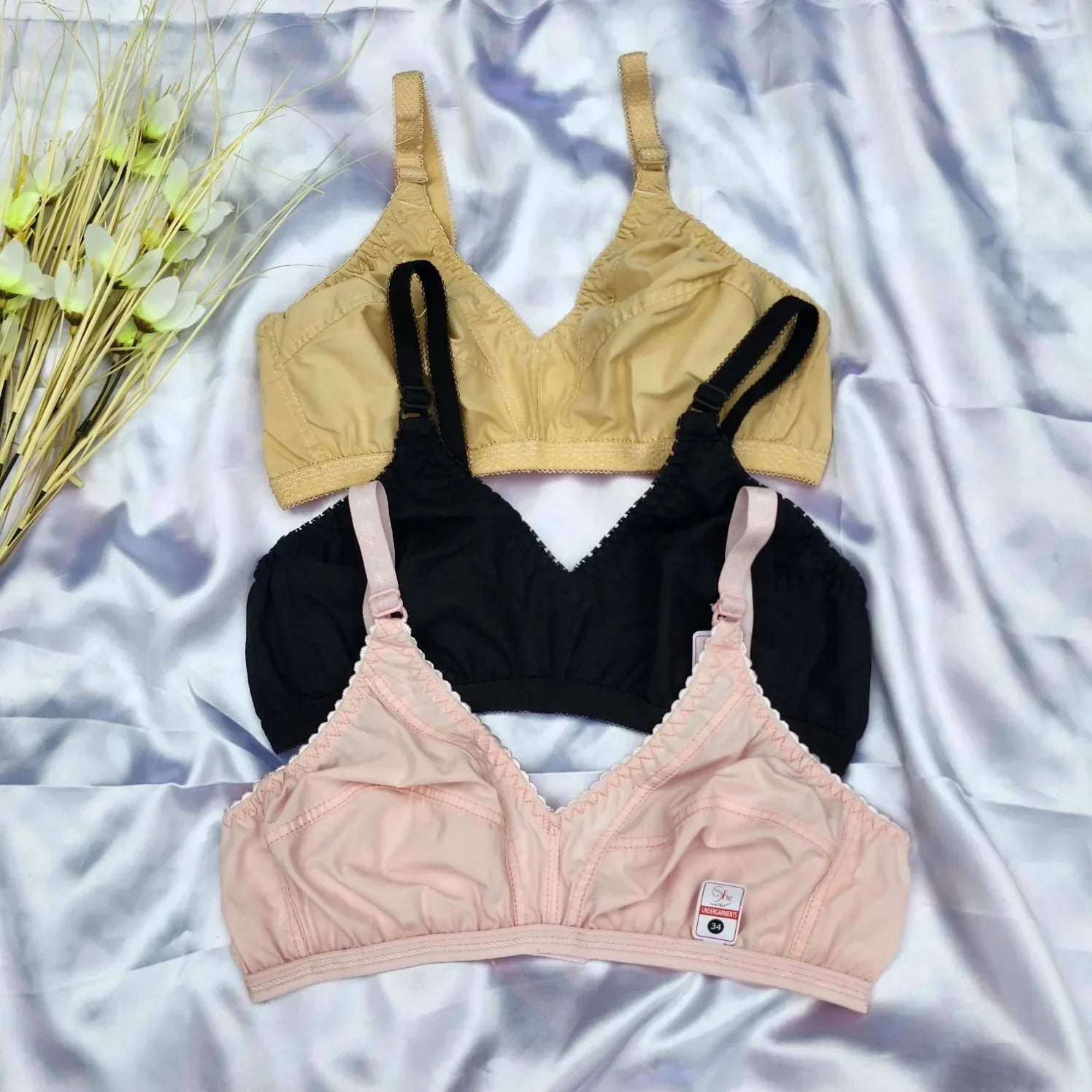 Experience unmatched comfort and style with the Pack of 3 Soft Classic Cotton High-Quality Non-Padded Bras by Luxury Desires. Perfectly tailored for women who prioritize breathability and support, these bras are ideal for daily wear.